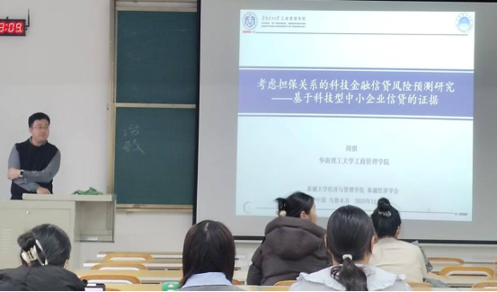 为助力青年教师及研究生把握学科前沿,拓宽研究视野,加强科研合作,经济与管理学院于2025年12月2日下午在11号楼318教室举办了一场专题讲座。本次讲座由华南理工大学工商管理学院的周骐副教授主讲,学院副院长曾燕主持,讲座主题为“考虑担保关系的科技金融信贷风险预测研究-基于科技型中小企业信贷的证据”,学院青年教师、研究生等30余人参加了此次讲座。