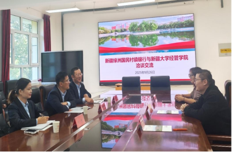 2025年9月26日上午,经济与管理学院-新疆绿洲国民村镇银行实习就业座谈会在红湖校区11号楼216举行,新疆绿洲国民村镇银行行长庞玉锋、副行长高盛、人力资源总监刘丹,经济与管理学院党委副书记、纪委书记马志栋及学院就业工作负责老师参加座谈。